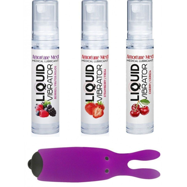 Следуй за кроликом — в мир наслаждений и невероятных удовольствий! Предлагаем купить набор из 3-х вкусов стимулирующего лубриканта (3×10 мл) и вибропули Adrien Lastic Purple. Стимулирующий лубрикант Amoreane Med — это естественная формула с экстрактами растений из лесов Амазонки, которая заставит вас дрожать от удовольствия! Эффект вибрации дополнит ощущения в самые интимные моменты. Вибропуля в виде кролика с нежными силиконовыми ушками порадует вас 10 режимами работы. Используйте все вместе или по отдельности — как подскажет фантазия! Набор упакован в стильную косметичку-хамелеон.